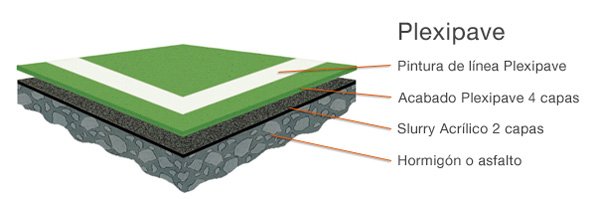 Plexipave está hecho 100% de látex acrílico con una formulación de color intenso para aplicar por encima de hormigón o asfalto.